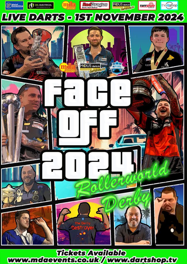 MDA and MODUS are returning to Derby for FACE OFF 2024, presenting an impressive lineup for the event. This gathering will showcase the top players worldwide alongside the finest local talent, all happening live at Rollerworld DERBY.