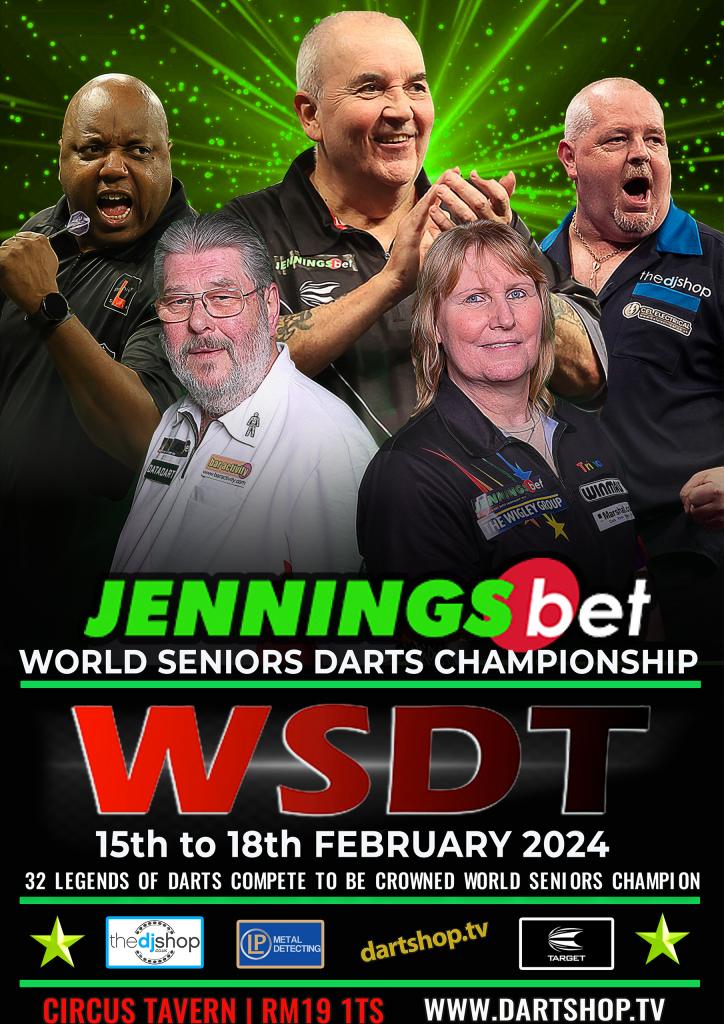 After two successful editions, the World Seniors Darts Championship returns to the magical darts venue Circus Tavern in Purfleet from February 15-18, 2024.